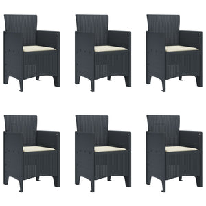 HKH Conjunto de Jantar de Jardim de 7 Peças com Almofadas Rattan - Preto