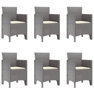 HKH Conjunto de Jantar de Jardim 7 Peças com Almofadas Cinza Claro Rattan Poliéster - Cinzento