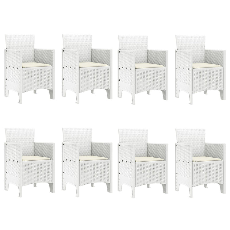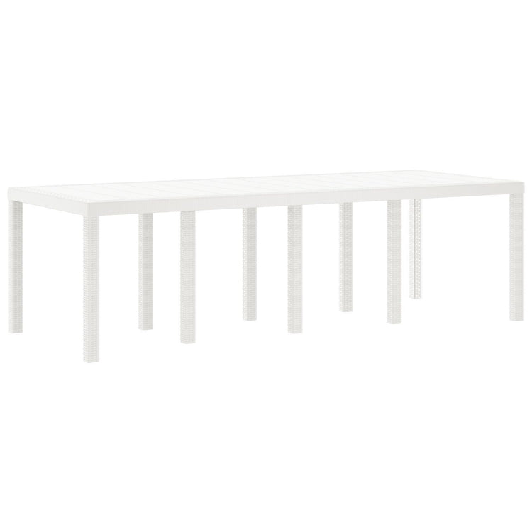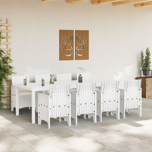 Este Conjunto de Jantar de Jardim com 9 Peças tem uma mesa retangular e oito cadeiras, perfeito para diversão ao ar livre, jantares ou encontros informais. O seu visual branco combina bem com qualquer jardim, pátio ou terraço, trazendo uma vibe moderna e funcional para qualquer ocasião.