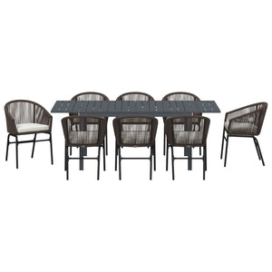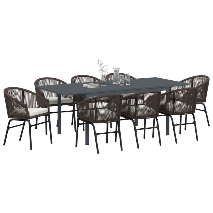 Conjunto de Jantar para Jardim HKH com Almofadas de 10 Peças Rattan de Polipropileno, Mesa de Jardim Extensível HKH Antracite (140-210)x90x73 Cm Aço - Castanho