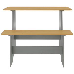 HKH Mesa de Jantar Banco Reine Maciço Castanho Mel/cinzento em Pinho