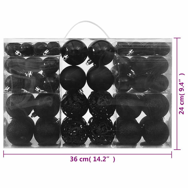 HKH Conjunto de 100 Bolas de Natal - Preto