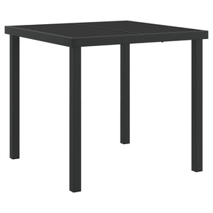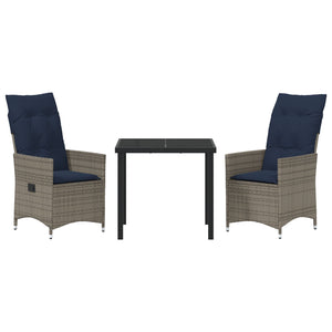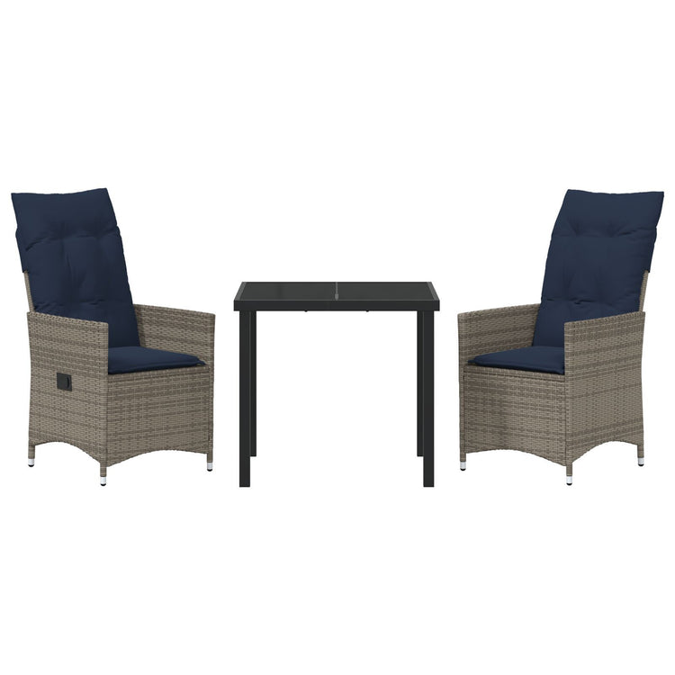 Conjunto de Jantar HKH 3 Peças com Almofadas de Vime Poliéster Cinza, Mesa de Jardim HKH Preta 80x80x73 Cm com Vidro Temperado - Preto