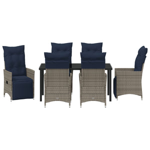 Conjunto de Jantar HKH de 7 Peças com Almofadas em Rattan Cinza, Mesa de Jardim HKH Preta 160x80x73 Cm com Vidro Temperado - Azul