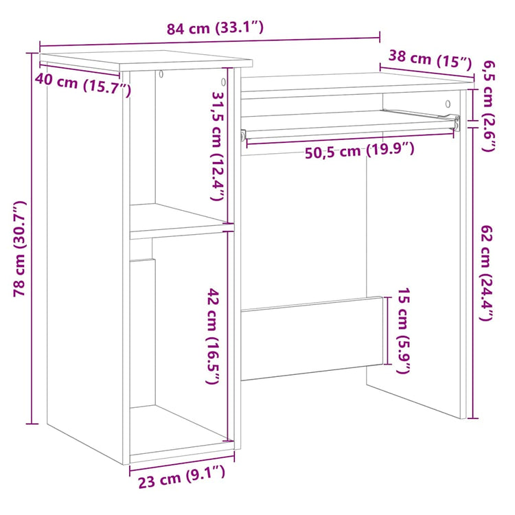 - Altura da área de trabalho: 71,5 cm