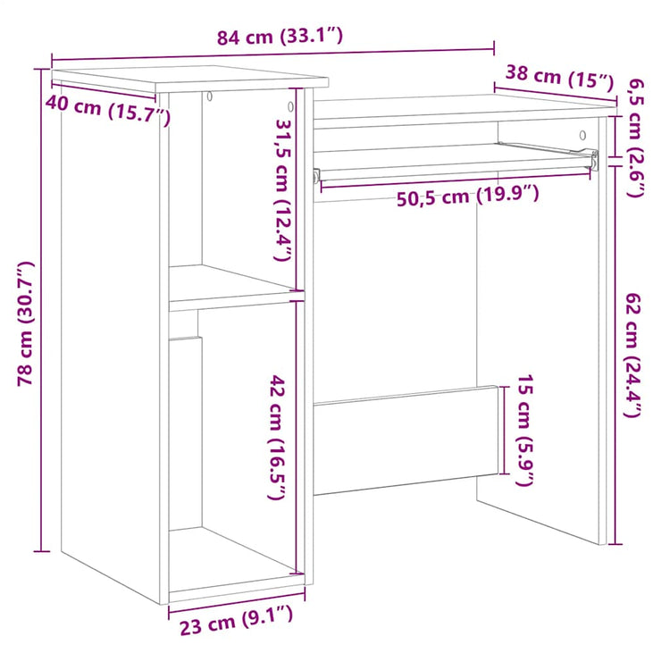 HKH Secretária com Prateleiras Contraplacado - Preto