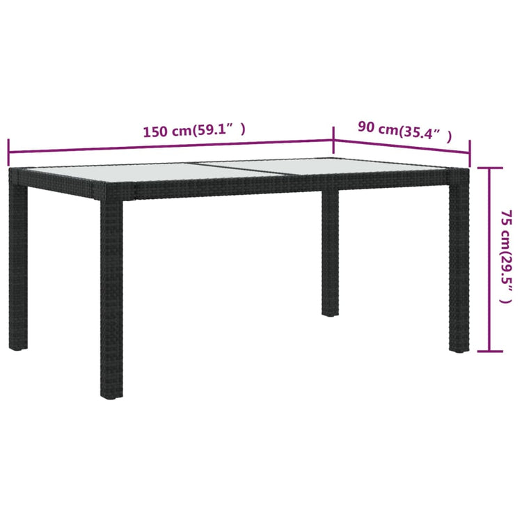 HKH Mesa de Jardim Vidro Temperado e Vime Pe - Preto