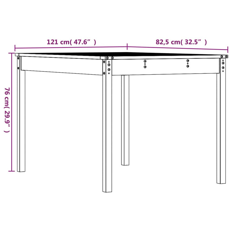 - Madeira de pinho maciça: a mesa de exterior é feita em madeira de pinho maciça. A madeira de pinho maciça é um bonito material natural. A madeira de pinho possui um grão reto e os nós conferem ao material o seu aspeto rústico.