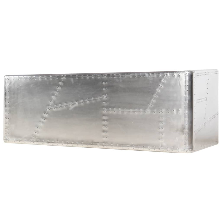 A secretária estilo aeronave é feita em madeira manufaturada e a sua superfície foi chapeada com remendos de painéis em metal polido, acentuada com parafusos de aço expostos, tornando-a extremamente durável. Possui um tampo grande que oferece um amplo espaço para colocar os seus documentos, papéis, livros ou outros pertences. A secretária é fácil de montar.