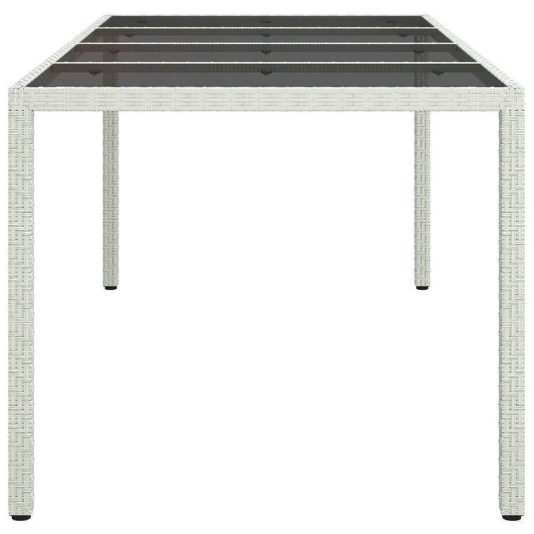 Esta mesa de patio combina funcionalidade e estilo, sendo perfeita para refeições ao ar livre. Feita com vime PE, aço revestido a pó e vidro temperado, tem um aspeto moderno e elegante, ideal para qualquer jardim ou patio.