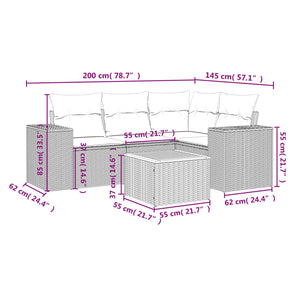HKH 5 Pcs Conjunto Sofás de Jardim C/ Almofadões Vime Pe - Cinzento