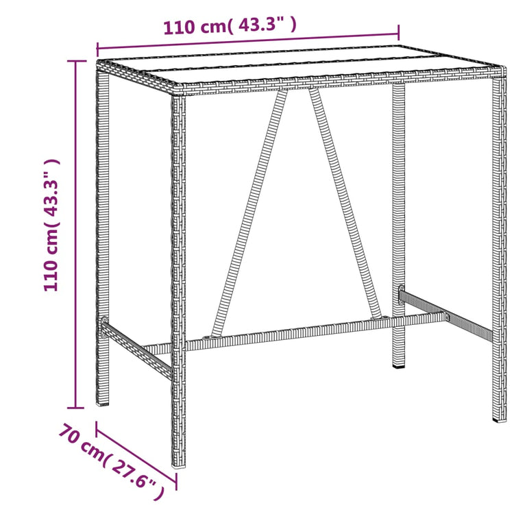 HKH Mesa de Bar com Tampo de Vidro Vime Pe - Cinzento
