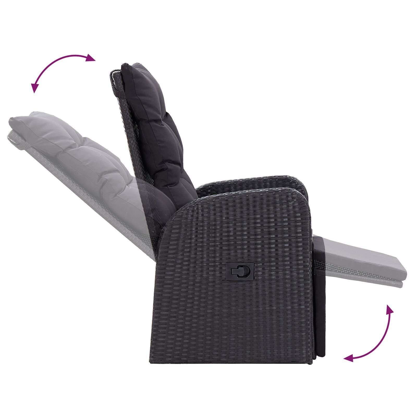 HKH Conjunto de Jantar de 5 Peças com Almofadas de Rattan e Acácia - Preto