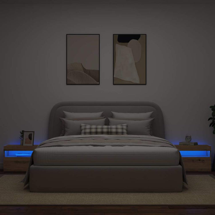 HKH Mesa Cabeceira com Led em Derivados de Madeira Artisiano em Carvalho