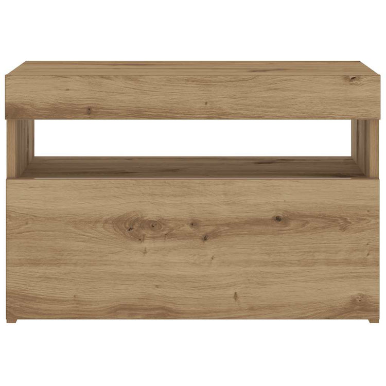 Atribua um charme ultracontemporâneo ao seu espaço habitacional com esta elegante mesa de cabeceira! Com um design moderno e prático, esta mesa de cabeceira com luzes LED irá tornar-se definitivamente um ponto focal na sua divisão. Material prático: os móveis feitos com derivados de madeira possuem uma qualidade excecional, com uma superfície suave, bem como apresentam força, estabilidade e resistência à humidade. Luzes LED coloridas: o armário possui luzes LED RGB, que têm menus diferentes para alterar a cor das luzes e permitir que a cor se ajuste automaticamente de forma diferente. As luzes LED sublinham o aspeto moderno e contribuem para a sensação de tendência.Amplo espaço de arrumação: a mesa de cabeceira proporciona bastante espaço de arrumação para manter as suas revistas, livros, controlos remotos e outros artigos bem organizados e ao alcance.Função de exposição: o tampo robusto do móvel de apoio é ideal para expor objetos decorativos, molduras ou vasos com plantas. Dica útil:O produto inclui um conetor USB que requer uma fonte de alimentação USB de 5V certificada (não incluída). Não utilizar este produto se algum componente estiver partido, rasgado ou em falta. Este produto é alimentado por CC 5V, mas a fonte de alimentação USB de 5V certificada não está incluída. Uma tensão mais elevada pode provocar um sobreaquecimento e resultar em danos no dispositivo e no risco potencial de sobreaquecimento e incêndio.nan