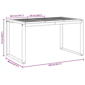 Mesa de Jantar Ao Ar Livre HKH Cinza 140x80x75 Cm Aço e Madeira Sólida de Acácia - Cinzento