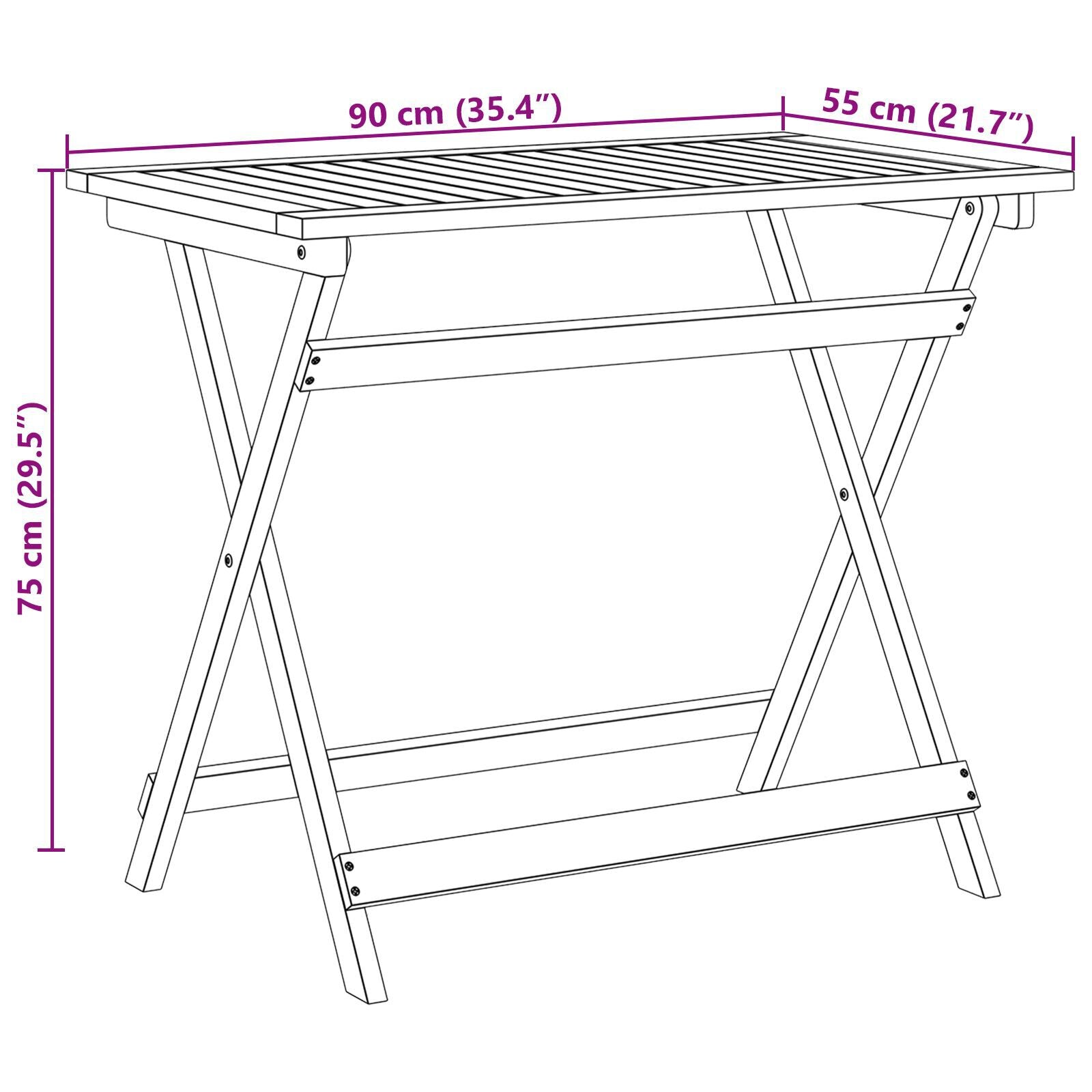 HKH Mesa de Jardim Dobrável Retangular 100x55x75 Cm Madeira Sólida de Acácia - Castanho