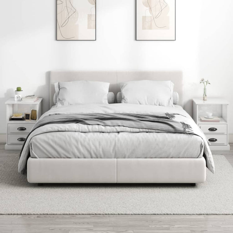 HKH Conjunto de 2 Mesas de Cabeceira - Branco Brilhante