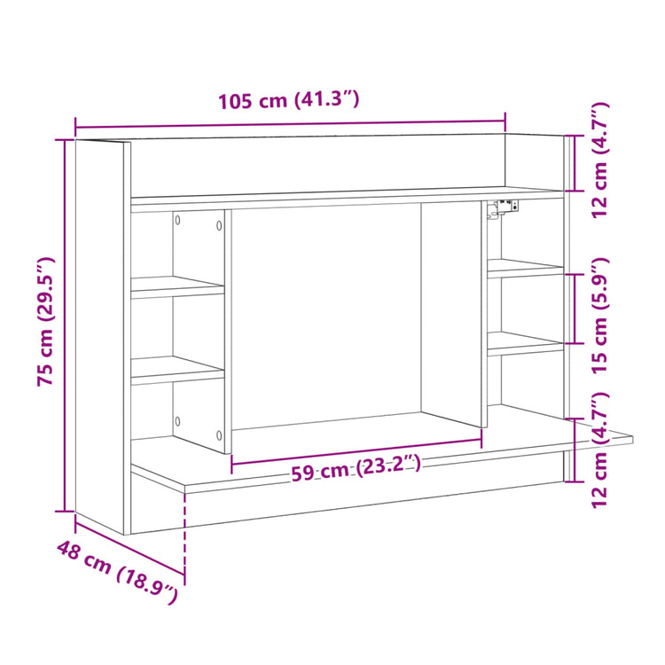 - Dimensões: 105 x 48 x 75 cm (L x P x A)