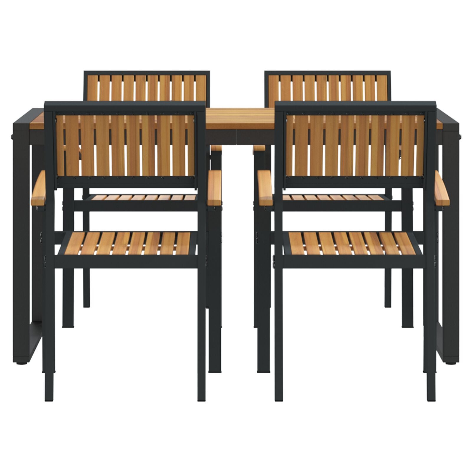 HKH Conjunto de Jantar de 5 Peças em Madeira Sólida de Acácia e Metal - Preto