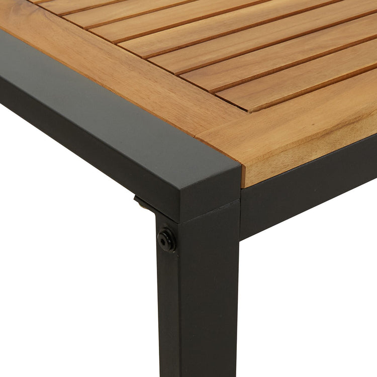 - Construção Robusta: A mistura de madeira sólida e aço revestido a pó cria uma estrutura resistente que suporta diferentes climas, mantendo a aparência intacta. Esta durabilidade traz longevidade ao conjunto de móveis externos, garantindo utilização por muito tempo.