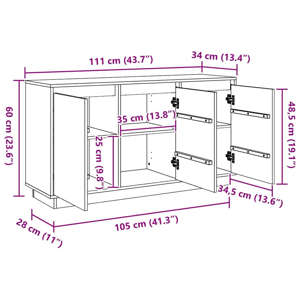 - Armazenamento Generoso: Com medidas de 111 x 34 x 60 cm, Este Aparador possui amplos compartimentos internos. A superfície espaçosa pode acomodar uma variedade de itens, de utensílios a decorações, se tornando um aliado versátil para manter seu espaço organizado.