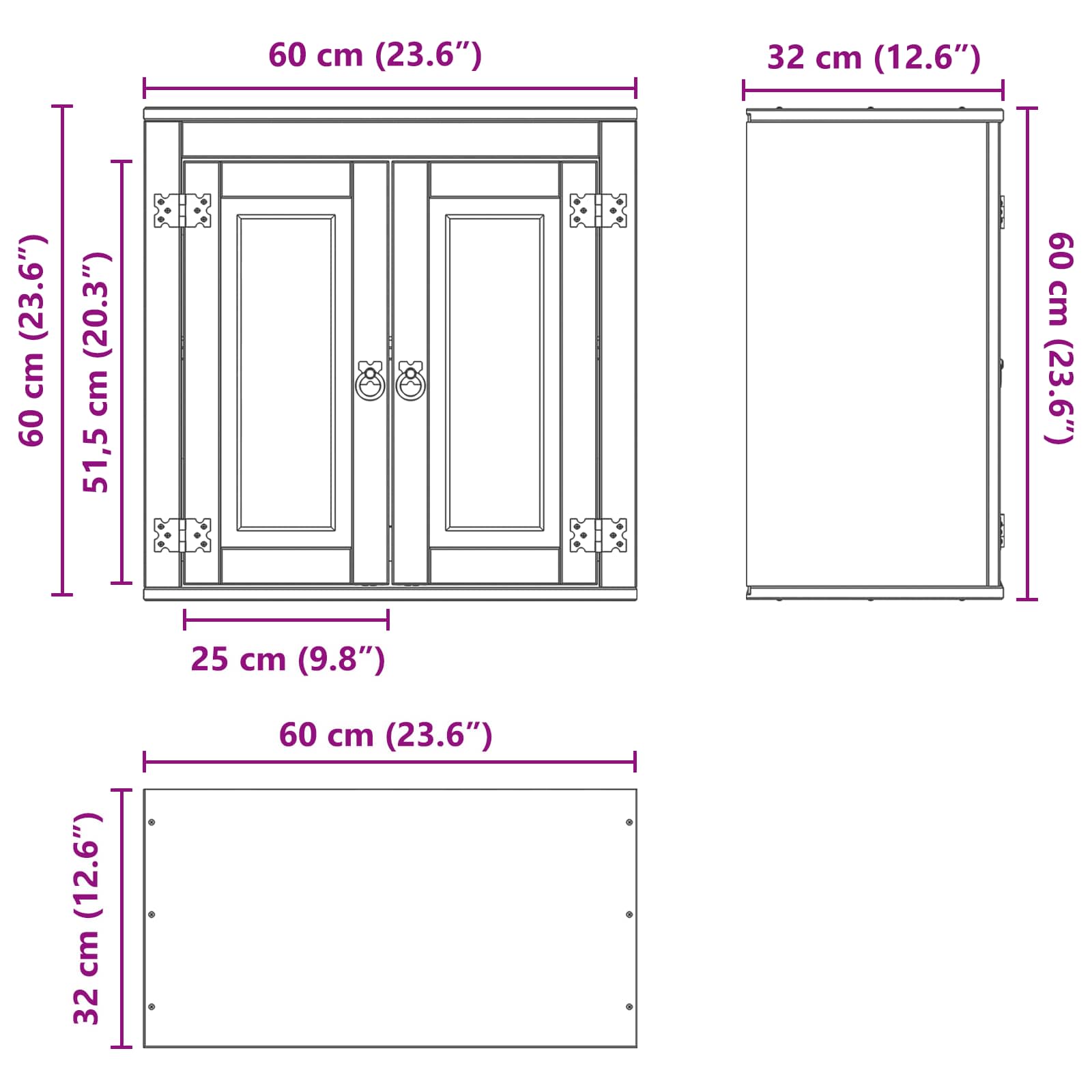 - Dimensões gerais: 60 x 32 x 60 cm (C x L x A)