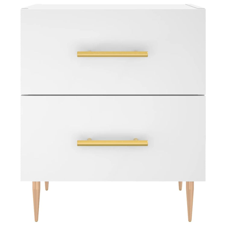 Dê um toque de charme moderno ao seu interior com este mesa de cabeceira! Material durável: os derivados de madeira possuem uma qualidade excecional e oferecem uma superfície suave bem como força, estabilidade e resistência à humidade. Arrumação espaçosa: a mesa de cabeceira possui gavetas que proporcionam um amplo espaço de arrumação para manter os seus livros, dispositivos multimédia e outros artigos fáceis de alcançar.Função de exposição: pode também colocar as suas fotografias, decorações ou flores favoritas no topo do móvel de apoio para enriquecer a sua vida. Pés de metal: os pés de metal acrescentam um estilo calmo ao seu interior, assegurando ainda estabilidade.nan