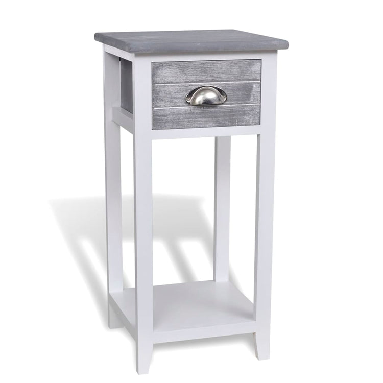 HKH Mesa de Cabeceira com 1 Gaveta - Cinza e Branco
