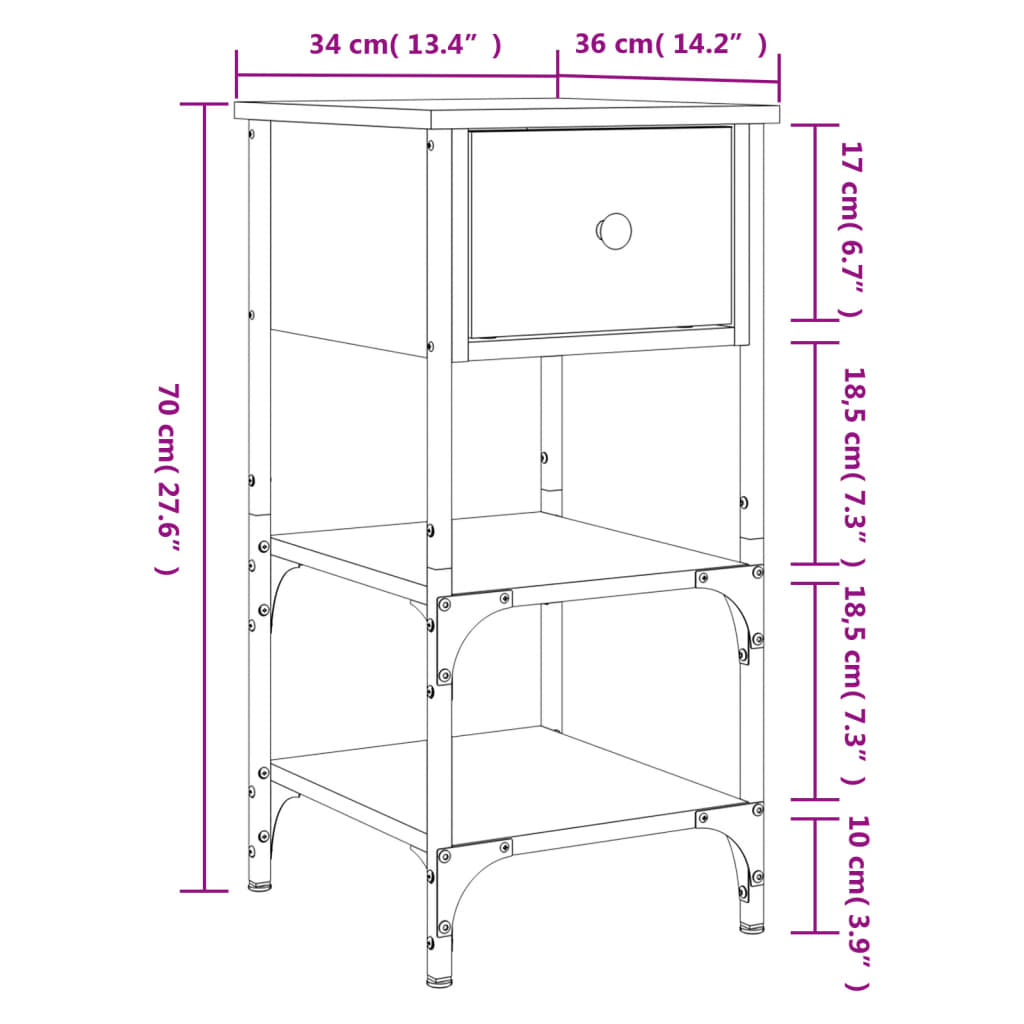 Com um design simples e compacto, esta mesa de cabeceira adapta-se facilmente ao seu quarto ou sala de estar e acrescenta um charme intemporal ao seu interior. Material durável: os derivados de madeira possuem uma qualidade excecional e oferecem uma superfície suave bem como força, estabilidade e resistência à humidade. Estrutura robusta: a estrutura de ferro assegura resistência e estabilidade.Amplo espaço de arrumação: a mesa de cabeceira proporciona um amplo espaço de arrumação para manter os seus vários artigos essenciais do dia-a-dia bem organizados e fáceis de alcançar.Função de exposição: pode também colocar as suas fotografias, decorações ou flores favoritas no topo da mesa de apoio para enriquecer a sua vida.Pés ajustáveis: os quatro pés ajustáveis com almofadas de plástico mantêm o móvel de apoio equilibrado em superfícies irregulares e aumentam a estabilidade. Atenção:Para evitar que o produto se vire, deve utilizar o dispositivo de fixação na parede fornecido.nan