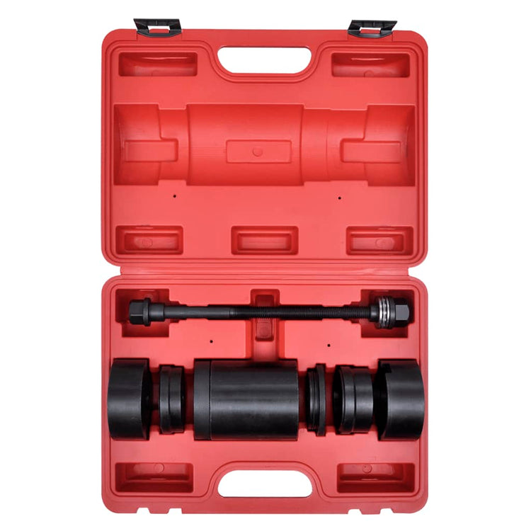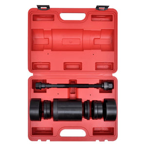 Este completo conjunto de ferramentas será ideal para a remoção ou instalação de buchas do falso quadrante em certos modelos da Mercedes Benz. O fino fio e o suporte de impulso permitem que a bucha seja montada rapidamente e sem problemas, o que o torna muito seguro de utilizar. É ideal para substituir as buchas do falso quadrante ainda no veículo e sem a necessidade de remover o conjunto do eixo traseiro.