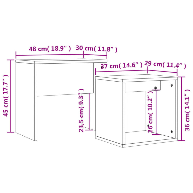 HKH Conjunto de 2 Mesas de Centro Encastrar em Derivados de em Madeira Carvalho Fumado
