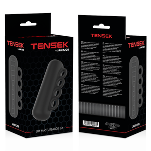 Desfrute de uma experiência completamente nova. O inovador modelo TENSEK 5 junta-se à linha de masturbadores JAMYJOB e apresenta um design exclusivo todo preto com fácil aderência.