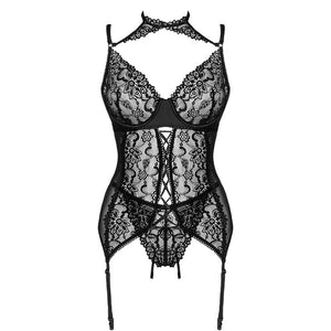 O espartilho Gielandra para os sentidos é um conjunto da luxuosa marca polaca LivCo Corsetti Fashion, composto por 2 elementos - um espartilho e uma tanga. A cueca é na clássica cor preta. O espartilho é preso com ganchos, o que permite ajuste e garante conforto. Também é possível ajustar o comprimento das alças e prender meias, o que diversificará bastante o estilo. Esta é uma proposta perfeita para mulheres que valorizam o conforto, mas não querem abrir mão de uma aparência sensual. A cueca é confeccionada em 90% poliamida e 10% elastano. Essa combinação de materiais torna o look muito flexível e não restringe os movimentos. O conjunto inclui inserções decorativas feitas de renda durável que enfatizam as formas femininas em todos os lugares mais importantes. O corte e a amarração na barriga tornam o espartilho sofisticado e ao mesmo tempo deixam espaço para a imaginação. Um elemento inusitado é uma gargantilha que vai chamar a atenção para o pescoço e as clavículas. Este espartilho sexy certamente irá apimentar muitas noites românticas.