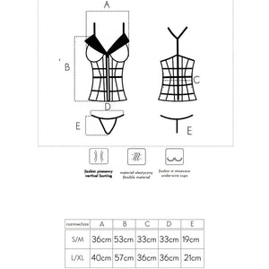 A roupa íntima é feita de materiais delicados e flexíveis. 90% poliamida e 10% elastano. Graças a isso, é vendida em dois tamanhos universais S/M e L/XL e não deve haver problemas para vesti-los. O conjunto será um ótimo presente que agradará ao seu parceiro ao mesmo tempo. A lingerie erótica permite que você desperte seus sentidos e revitalize qualquer relacionamento.