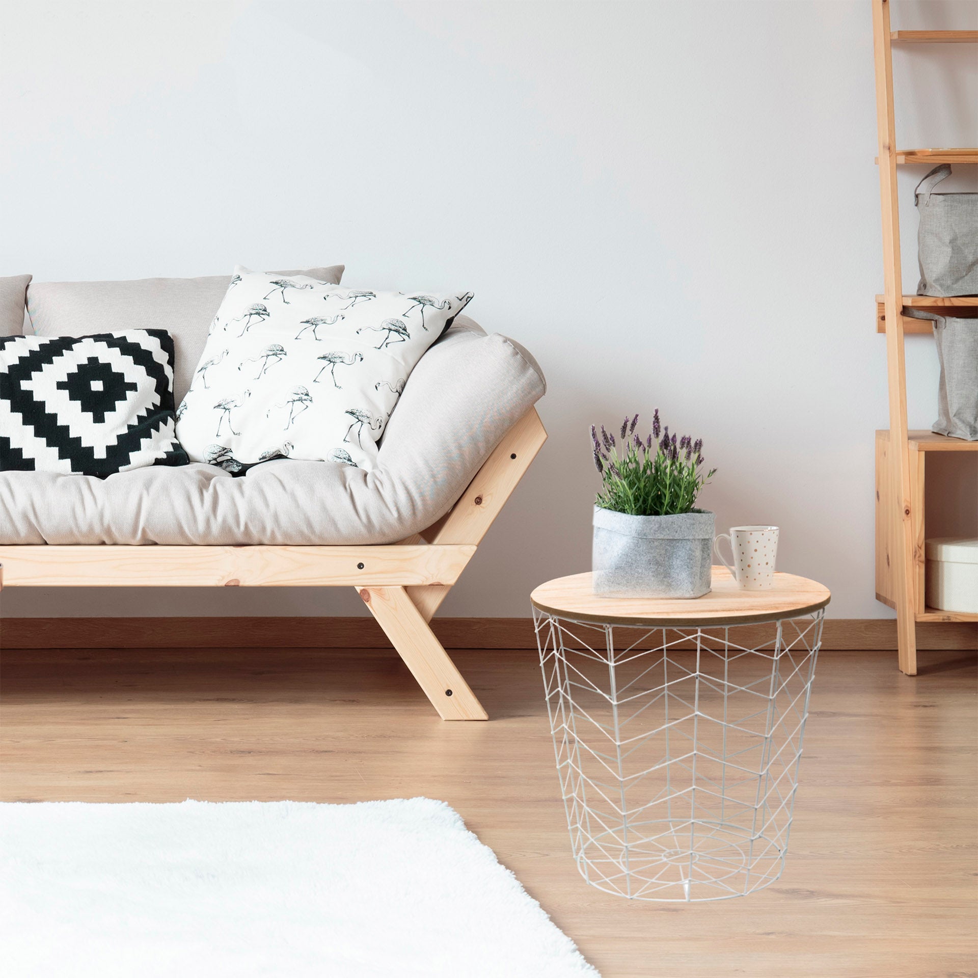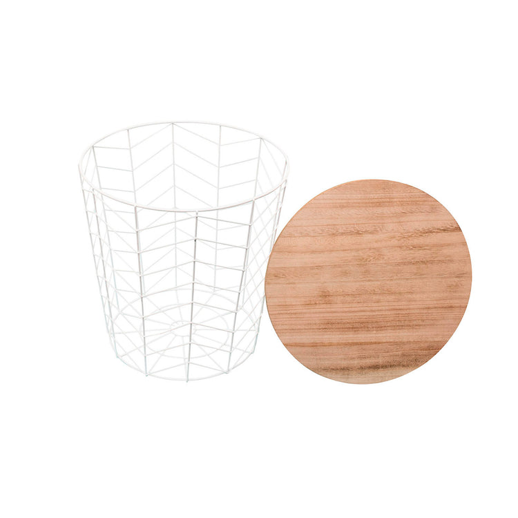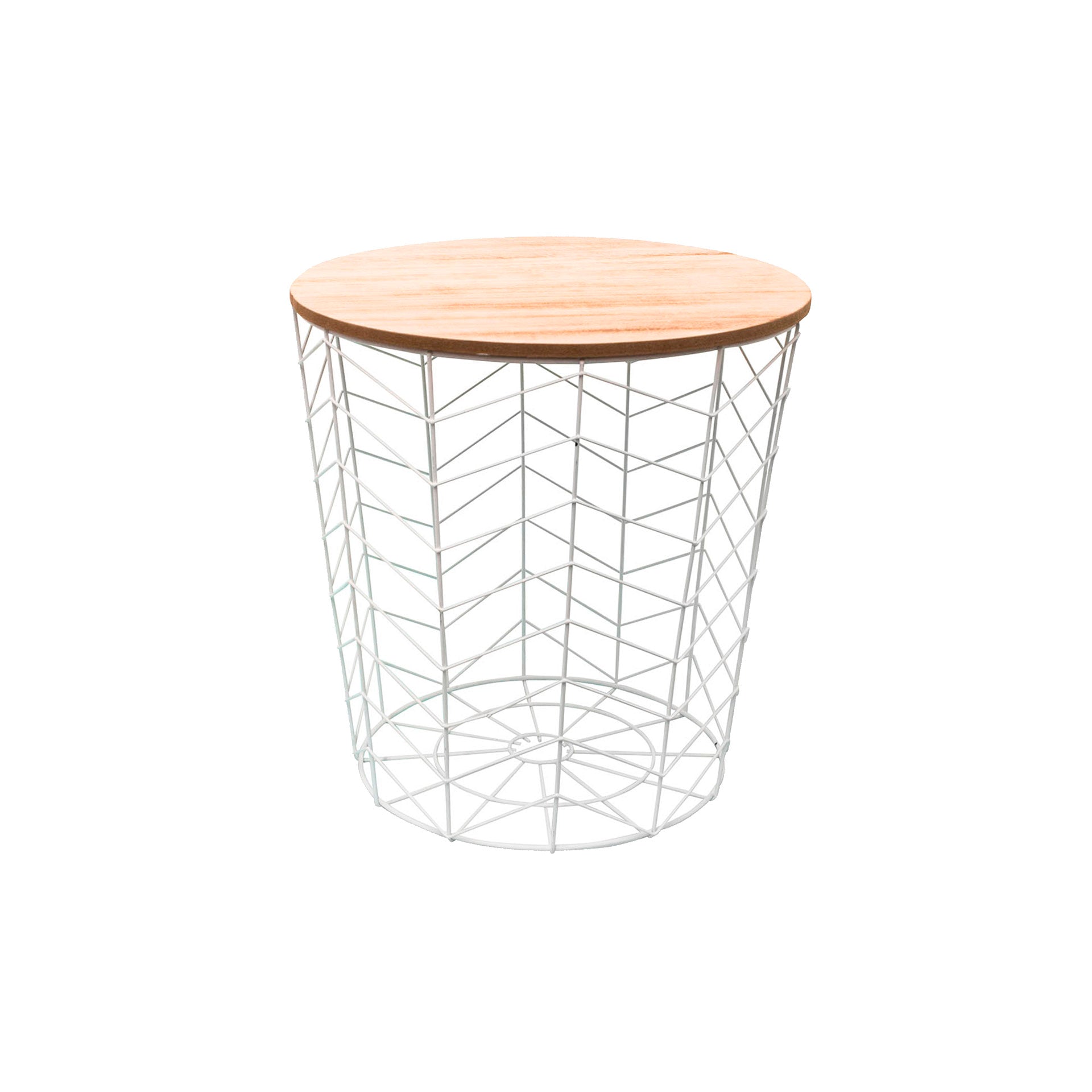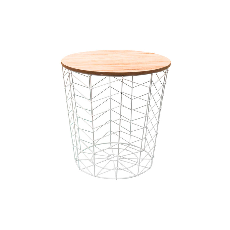 Sua sala de estar será aprimorada por esta mesa com fio exibindo um conjunto de padrões de chevron! Este design resolutamente moderno consiste em uma bandeja de madeira superior que repousa em uma instalação metálica altamente gráfica, que também pode ser usada como espaço de armazenamento. Detalhe: Tampo circular. 38,5 x 38,5 x 40 cm