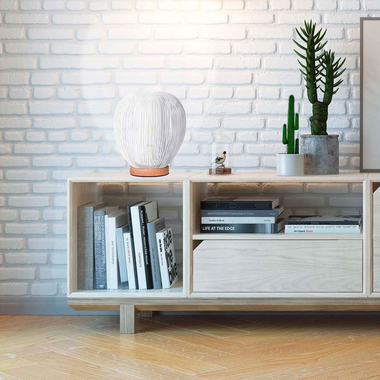 Candeeiro de Mesa Metal Arame Branco Forma de Bola