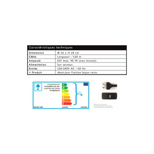 Decore seu interior com esta lâmpada sóbria e elegante para colocar, Em uma mesa de cabeceira, em uma entrada ou na sala de estar, você terá uma atmosfera de casulo de inspiração com fio, Dimensões: 26x28 cm - Comprimento do cabo: 1,80 m - Lâmpada: E27 (40 W) não incluída - Entrada: 220-240V AC - 50 Hz - Ramal no setor - Composição: Madeira e Metal, Metal, Metal, Metal, Metal, Metal, Metal, Metal, Metal Madeira e Metal, não incluídos - Entrada: 220-240V AC - 50 Hz - Ramo no Setor - Composição: Madeira e Metal, Madeira e Metal, Não Incluído - Entrada: 220-240V AC - 50 Hz - Filial no Setor - Composição: Madeira e Metal