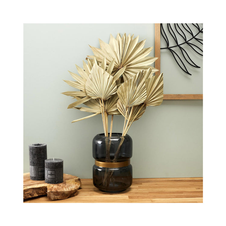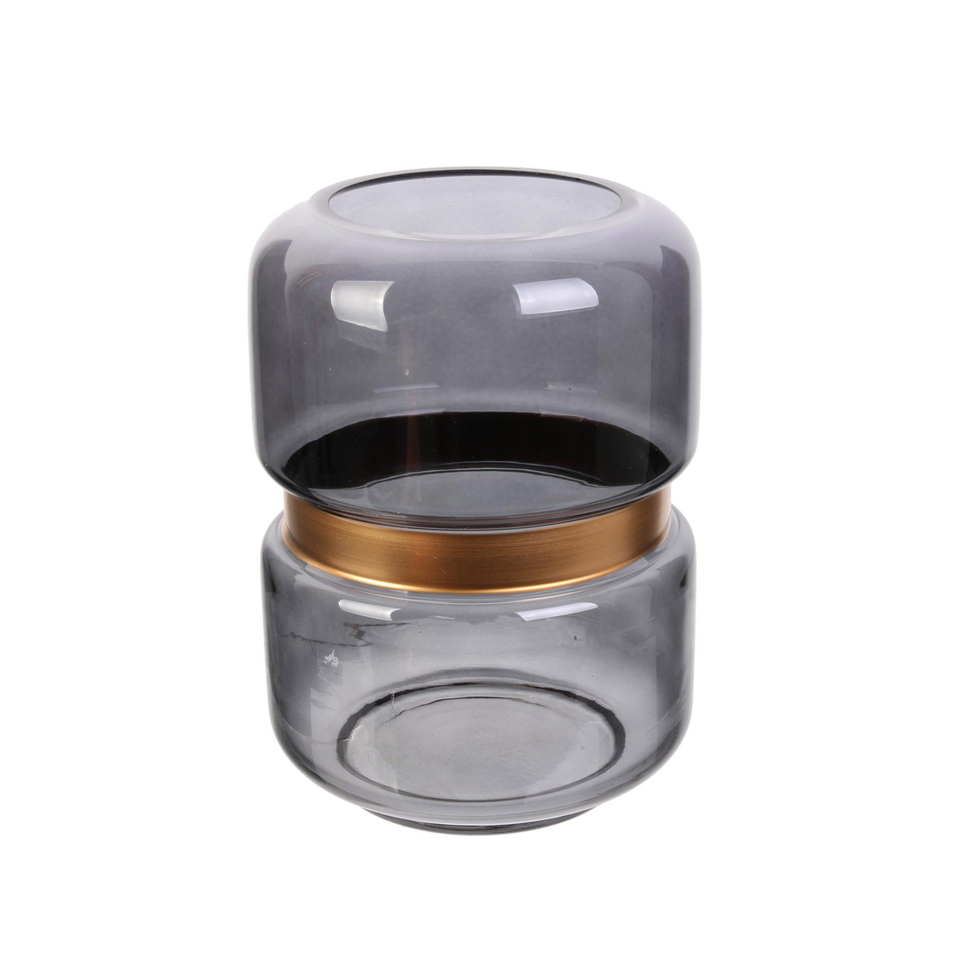 HKH Jarra Vidro Fumado Cinza Aro Dourado Filea 20,5 cm