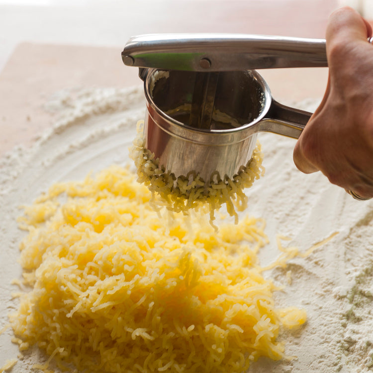 Este espremedor de batatas permite-lhe escolher a consistência que mais lhe convém com estes 3 raladores. Composição: aço. Dimensões: 26,5x8,6x6,6cm. 3 graus: 2, 5 e 12 mm