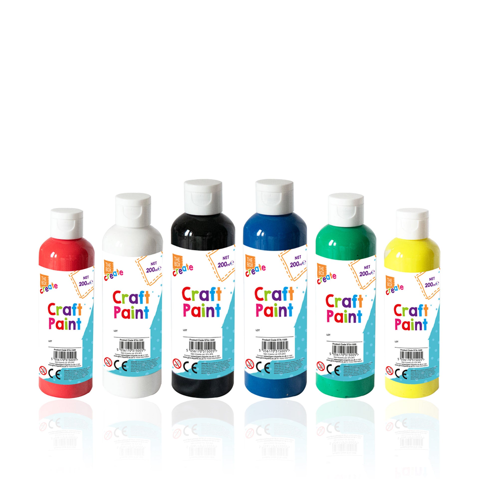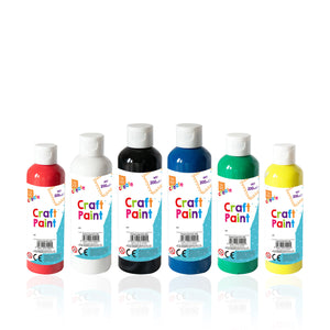 Frascos de Tintas para Artesanato totalmente seguros e não tóxicos e contêm 200ml de tinta de cores vivas. Ideal para que as crianças expressem sua criatividade individual.
