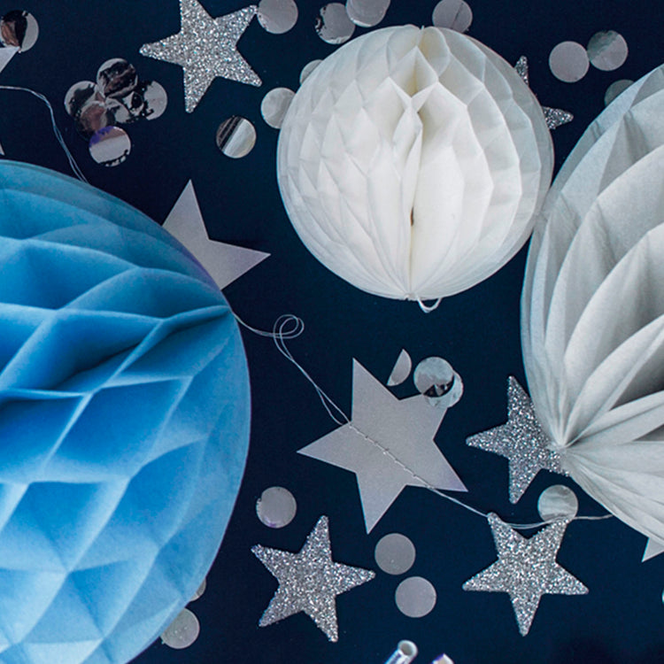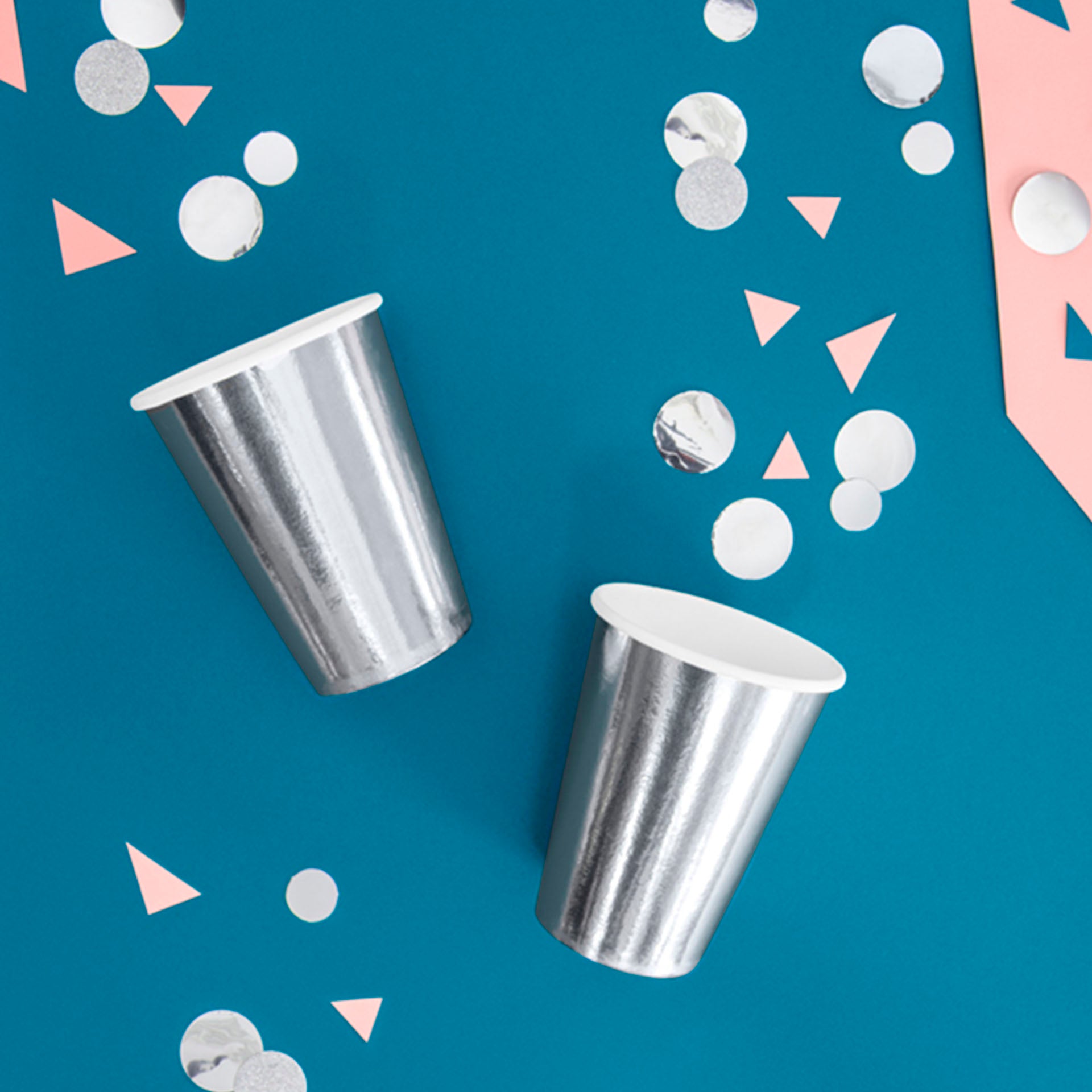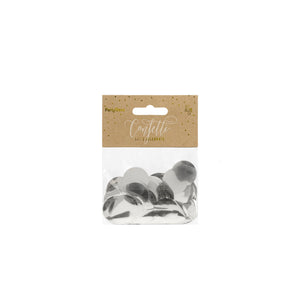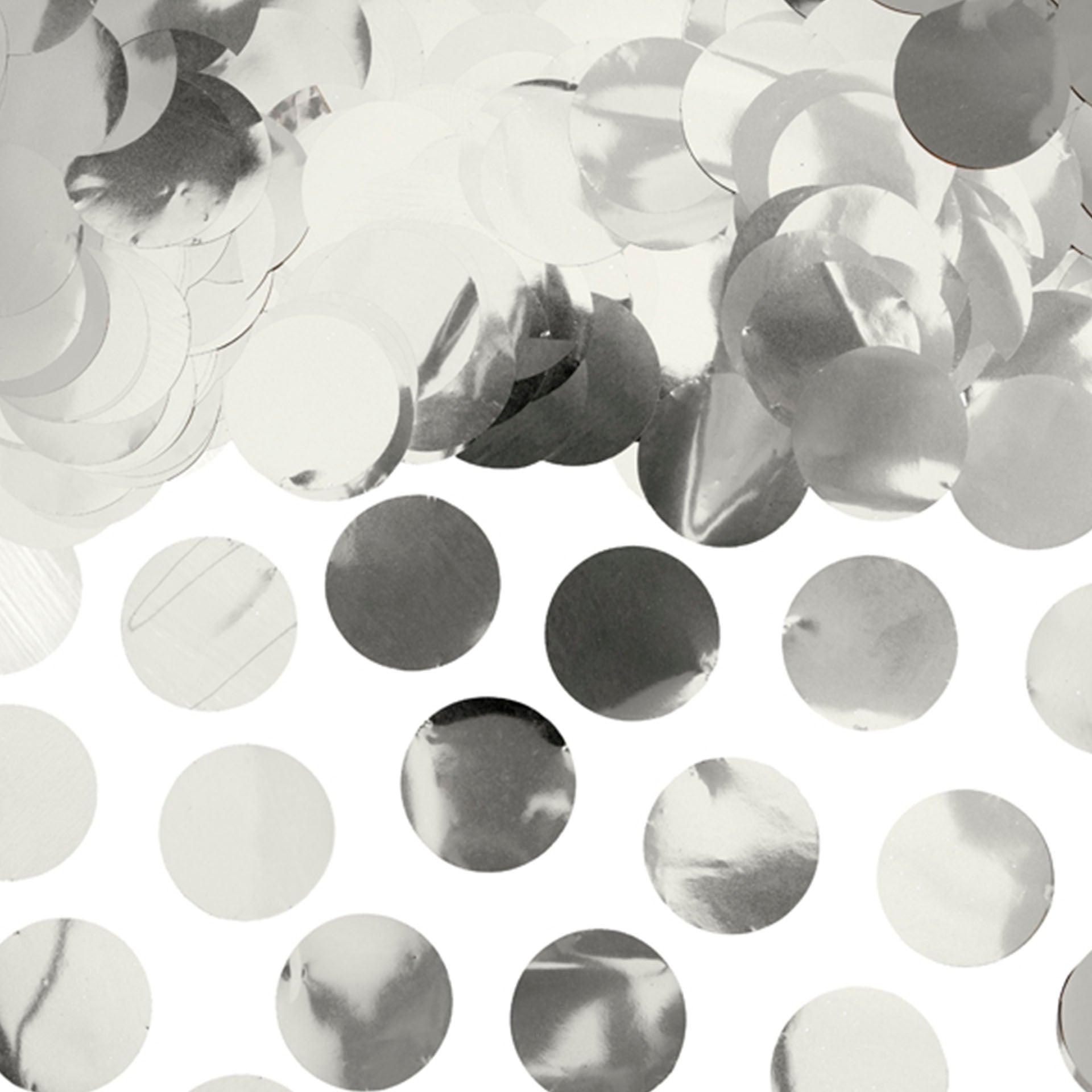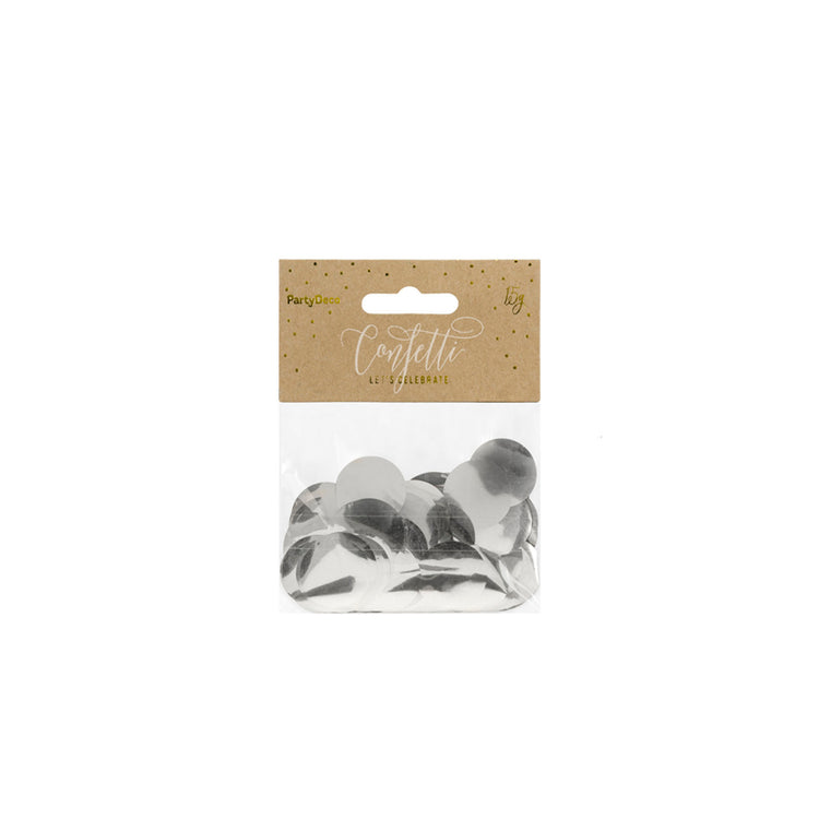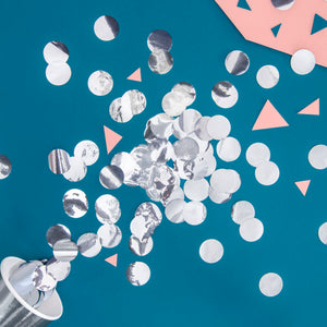 Lindos e eficazes confetes em forma de anel em prata vão complementar perfeitamente o arranjo na mesa durante a festa.