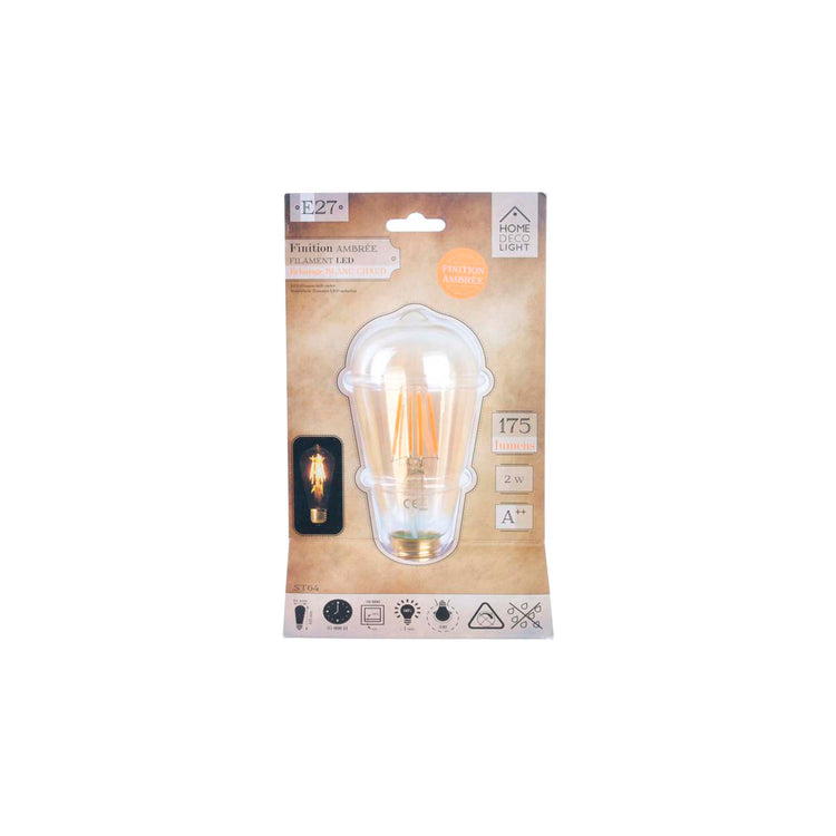Você é o charme das lâmpadas de filamento led! Personalize seus acessórios com esta lâmpada majestosa oferecendo um acabamento âmbar e iluminação branca quente, sua decoração de interiores será transformada em tempo recorde com este modelo de formato longo! Detalhe: ST64 E27 - 175 lúmens - 2 W equivalente a 40 W - A - 25.000 h - Rotação: 330 ,