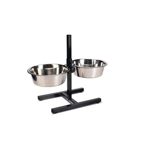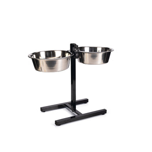 Este H-stand da Beeztees é ajustável em altura para que o seu cão possa comer à altura certa. O seu cão irá digerir melhor a sua comida através de uma boa postura enquanto come. O suporte contém 2 bandejas de aço inoxidável que brilham lindamente, dando-lhes uma aparência mais luxuosa. Além disso, os recipientes de aço inoxidável podem ser lavados na máquina de lavar louça. O diâmetro dos recipientes de aço inoxidável é de 28 cm. O suporte H possui tampas de borracha na parte inferior que servem como antiderrapante e protegem seu piso contra arranhões.