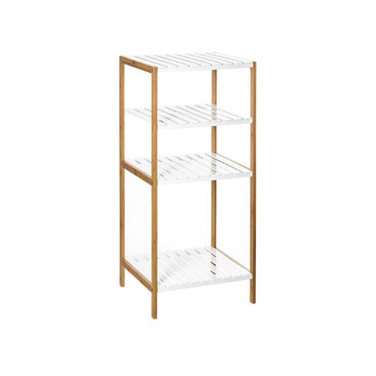 As prateleiras desta coleção adaptam-se às suas necessidades. Prateleira entregue com 4 níveis. Pode montar a prateleira com apenas 3 ou 4 níveis e posicionar a quarta prateleira na altura da sua escolha. Material: bambu sólido. Cor branca e natural. Dimensões 35x32 cm, altura 77 cm. Peso 2,65 kg.