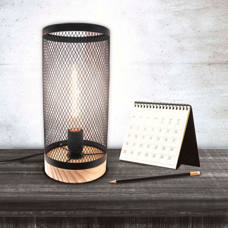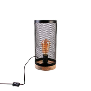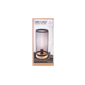 Candeeiro de Mesa Metal Arame Preto Forma Cilíndrica