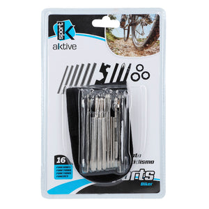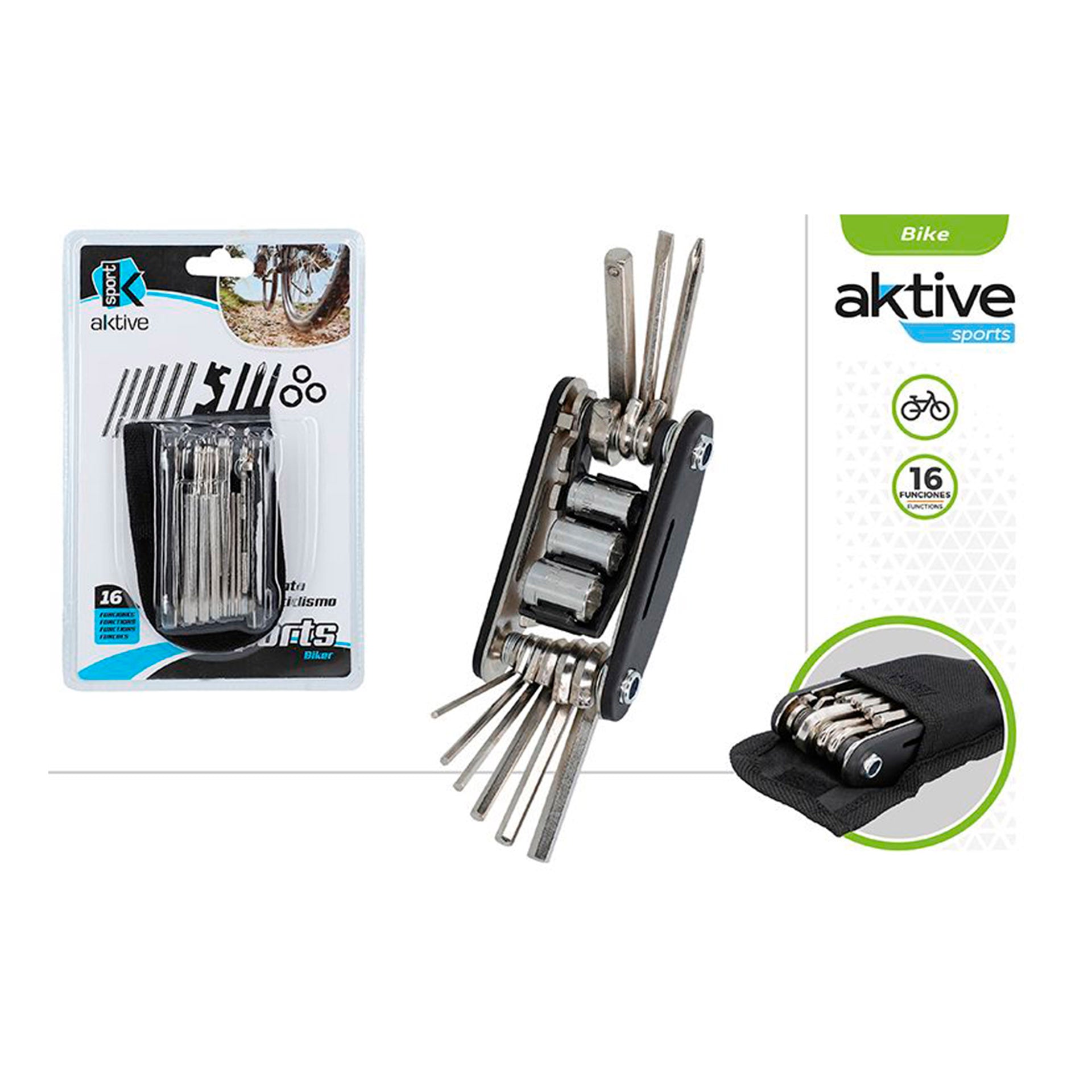 Ferramenta multiusos para efetuar regulações ou reparações durante as saídas de bicicleta.