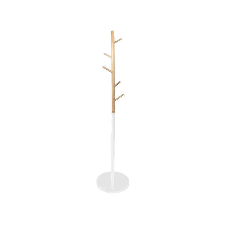 Aposta num visual contemporâneo para o teu lar com este cabide de madeira. 5 cabides. 180 cm. Base redonda.