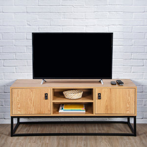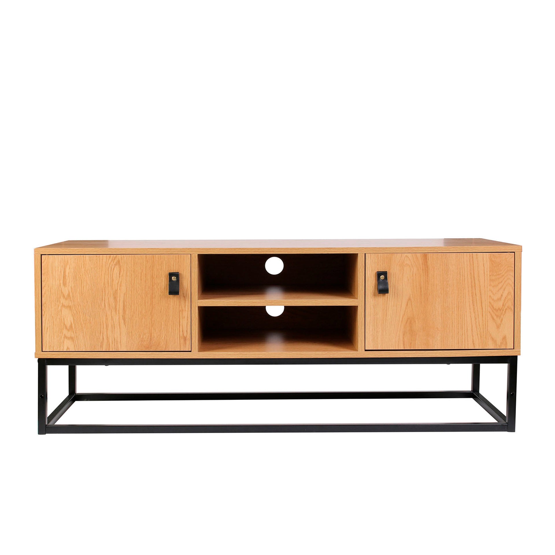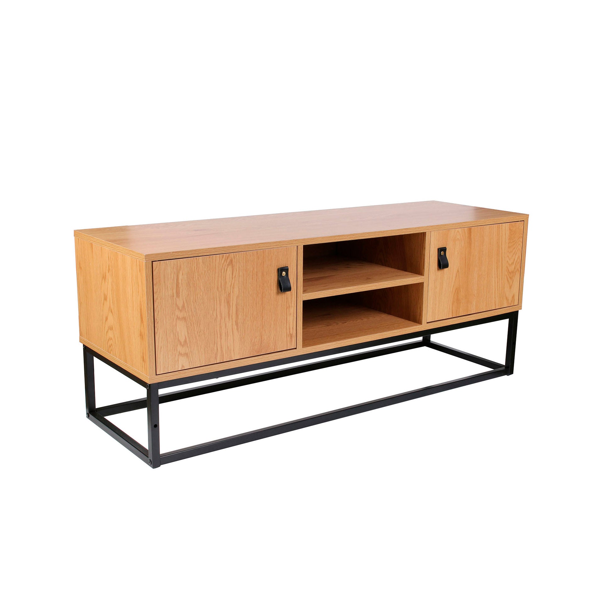 Você vai adorar o visual autêntico dos móveis da Abbott TV - Madeira crua e design metálico - Dimensões: 117x48x39 cm - 2 gavetas - Aviso incluído