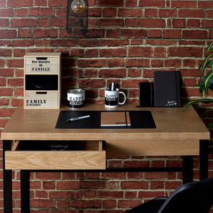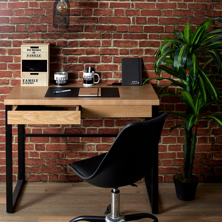 O charme e engenhosidade deste escritório feito de madeira e metal vai transformá-lo, você não vai querer deixá-lo! É perfeitamente organizado para permitir um trabalho eficiente em boas condições em casa. Você terá muito espaço para as pernas, acesso a uma gaveta, uma toalha embutida e espaço para instalar facilmente seu equipamento eletrônico. Dimensões: 100x74x50,3 cm.
